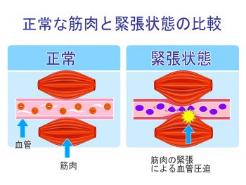 血流が滞って疲労物質(乳酸など)が蓄積していきます。
